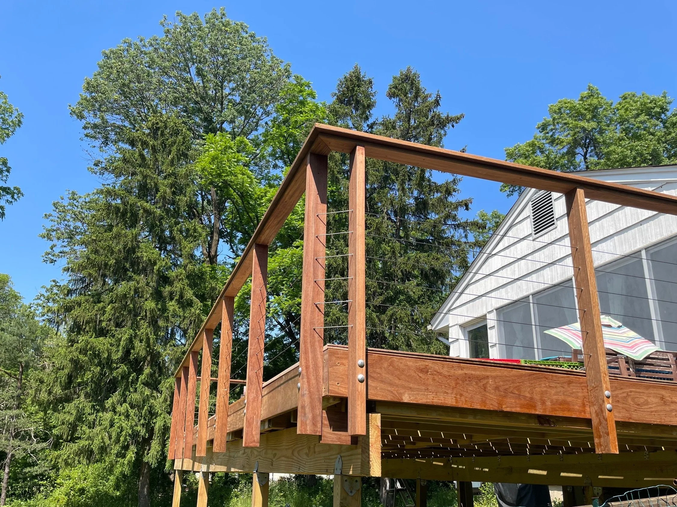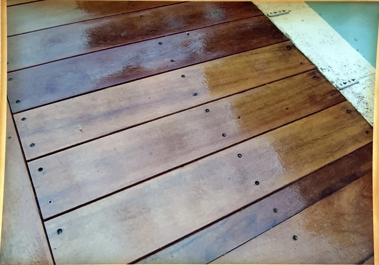 During the rebuild, upon careful inspection of existing components, we noticed that the frame had deformed over the years. We repaired then reinforced the frame before laying new boards.